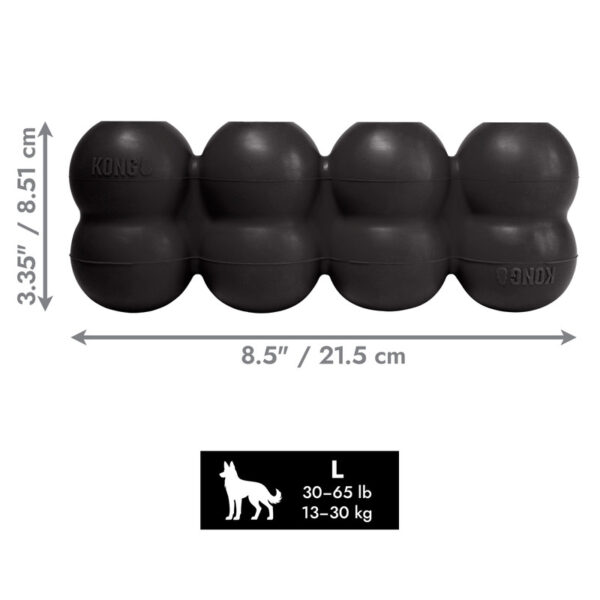 A treasure trove of chewing! A unique bone shape and durable KONG Extreme Rubber satisfies and rewards natural chewing instincts while providing a long-lasting solution that keeps dogs engaged. Stuff KONG Extreme Goodie Ribbon’s four spaces with treats and the Goodie Gripper™ ridges inside will make getting the nibbles out a mentally challenging puzzle for dogs. Ideal for stuffing with KONG Easy Treat, KONG Snacks or a dog’s favorite kibble.