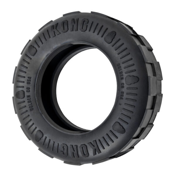 - Tire shaped toy made of durable KONG Extreme Rubber for determined chewers